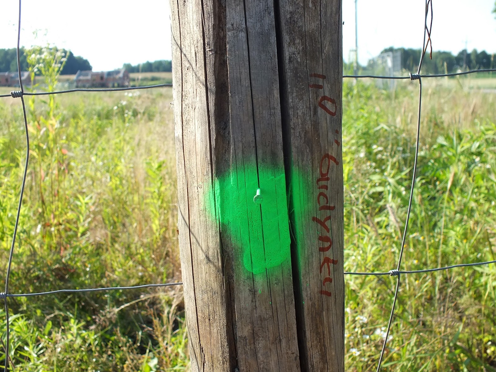 Rano stał tylko blaszak a wieczorem natknęliśmy się na częściowo wykonane ogrodzenie tymczasowe. Mało tego, na działce pracowali geodeci, bowiem zostały wytyczone osie ścian nośnych oraz poziom "zero". Panowie pewno solidnie dostali w kość, ponieważ dzisiaj słońce okrutnie dopiekało, ale według prognoz w nadchodzących dniach ma być znacznie gorzej, tak więc może i dobrze się stało, że pracę wykonali dzisiaj.