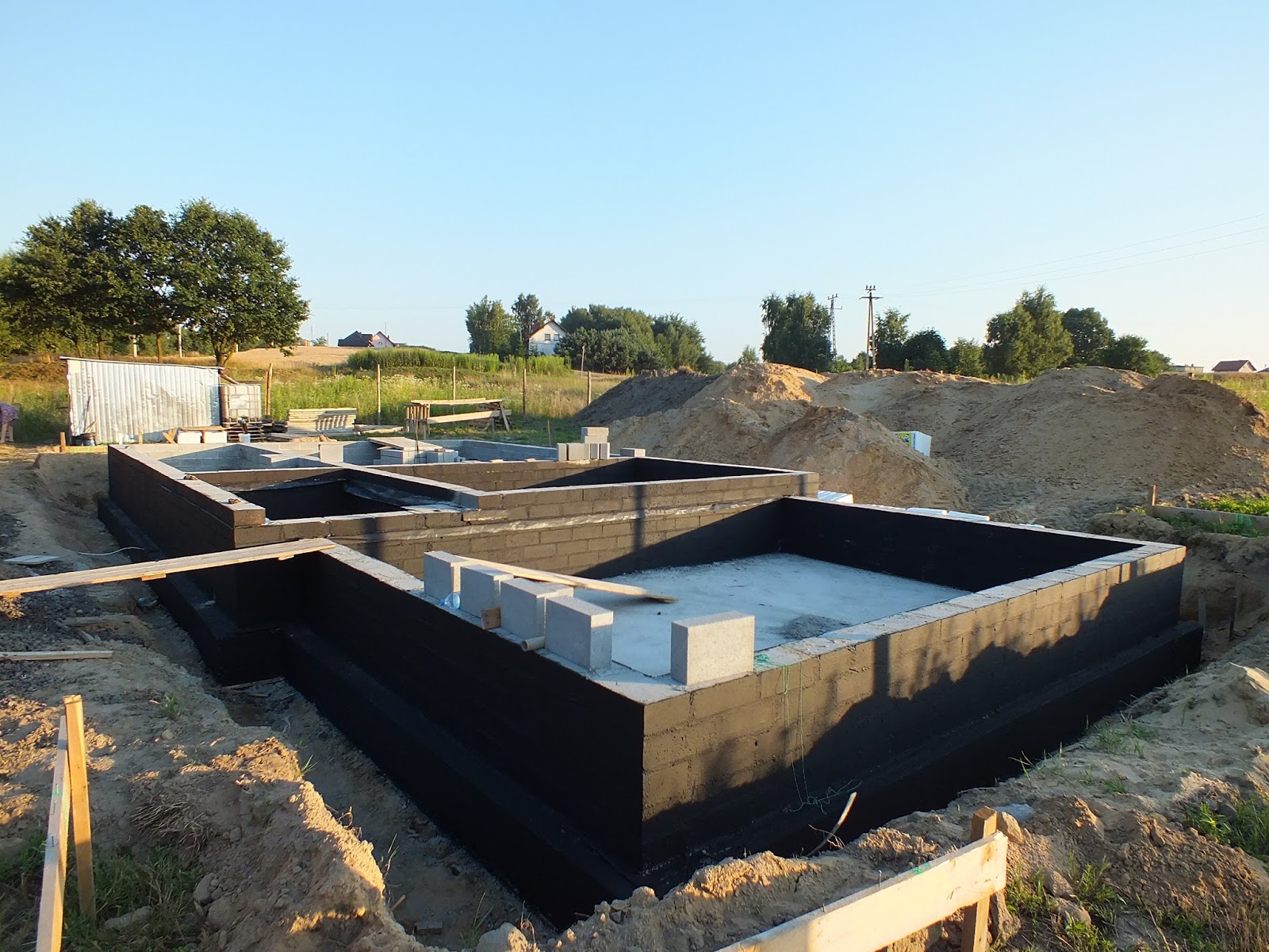 Budowy ścian fundamentowych dzień drugi. Do wymurowania pozostało już bardzo niewiele. Potem już tylko pokrycie całości dysperbitem, rozprowadzenie pierwszych elementów instalacji wodociągowej i kanalizacyjnej, ocieplenie styropianem, folia kubełkowa i zasypanie całości piaskiem, no takie tam "drobiazgi".