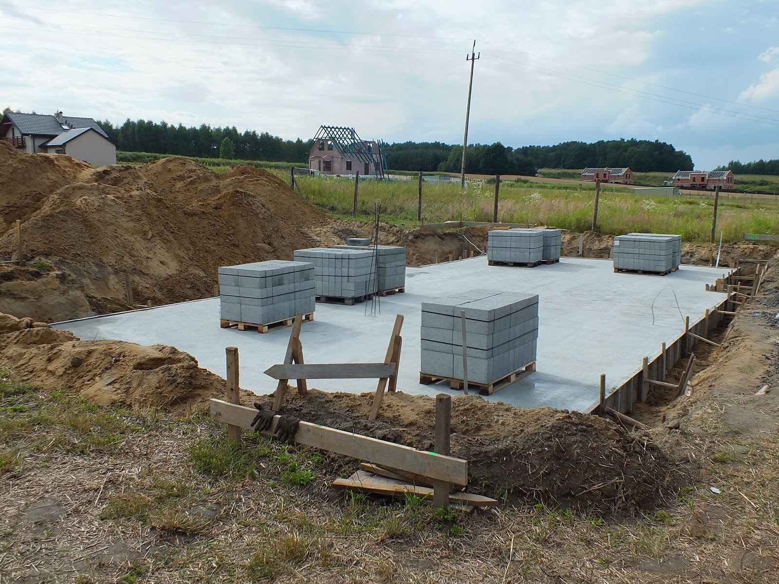 Budowy ścian fundamentowych dzień drugi. Do wymurowania pozostało już bardzo niewiele. Potem już tylko pokrycie całości dysperbitem, rozprowadzenie pierwszych elementów instalacji wodociągowej i kanalizacyjnej, ocieplenie styropianem, folia kubełkowa i zasypanie całości piaskiem, no takie tam "drobiazgi".