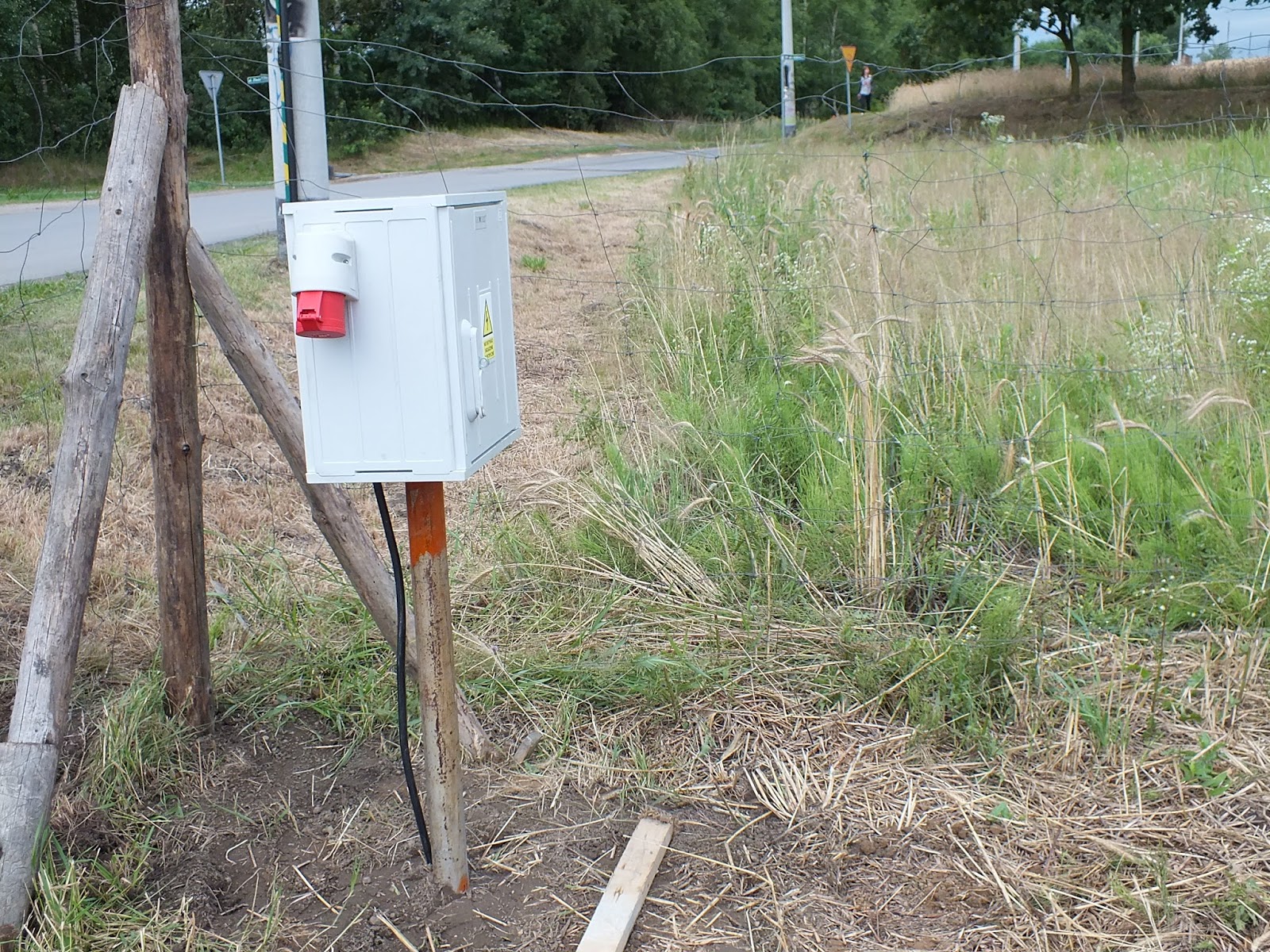 Na miejscu okazuje się, że ogrodzenie zostało dokończone i to w sposób, który przez chwilę wprowadził mnie w stan delikatnego zakłopotania. Siatka jest rozpięta wokół działki ale nigdzie nie ma wejścia. No to co mam skakać przez płot na własną posesję? Ale numer! Po chwili zauważam jednak, że od strony drogi jest spora odległość między słupkami, która stanowi zapewne wjazd na działkę i po odplątaniu kilku drutów siatki otwieram tę, umówmy się, bramę.