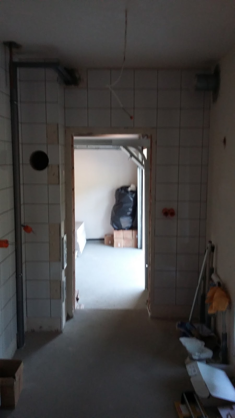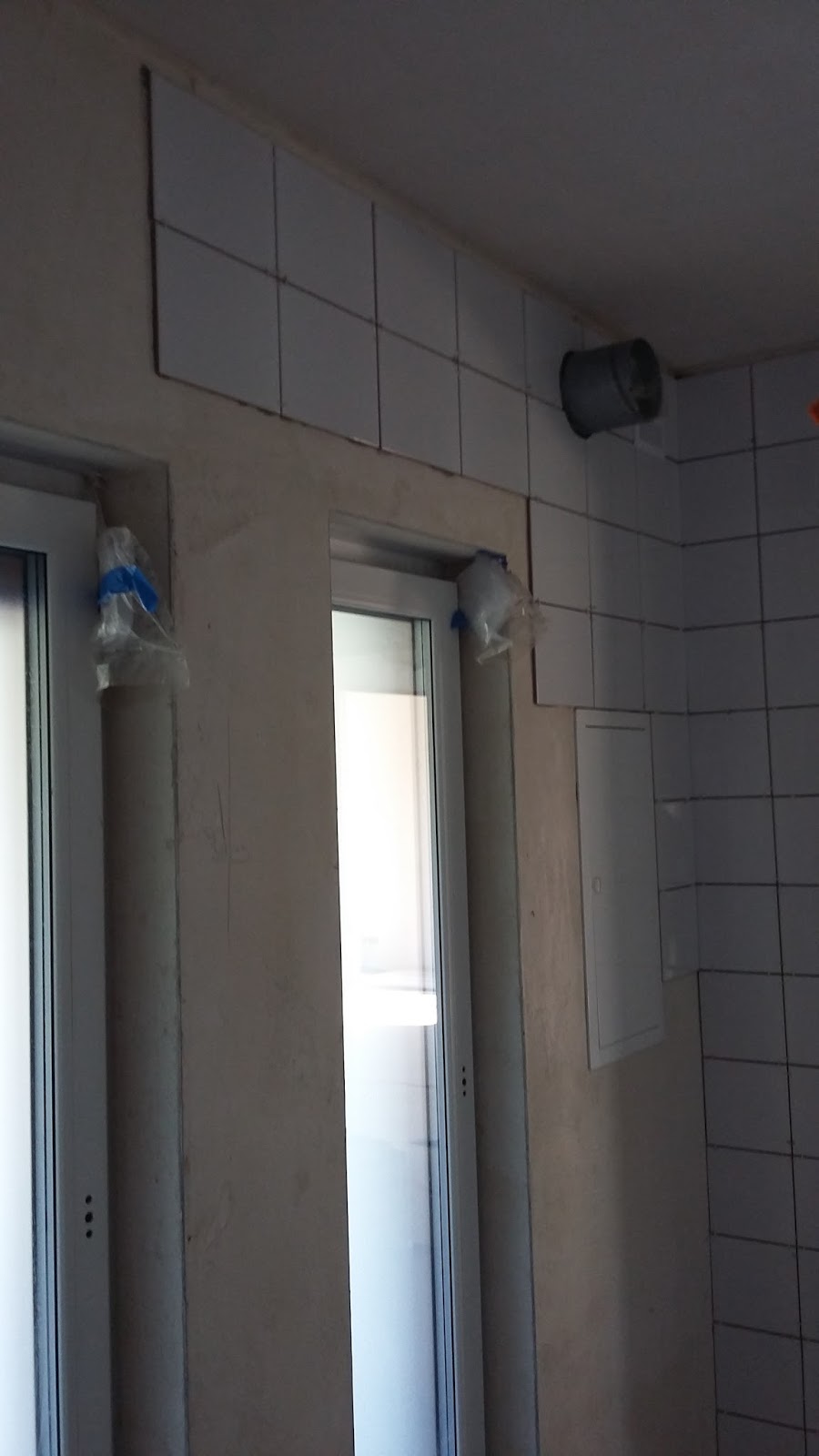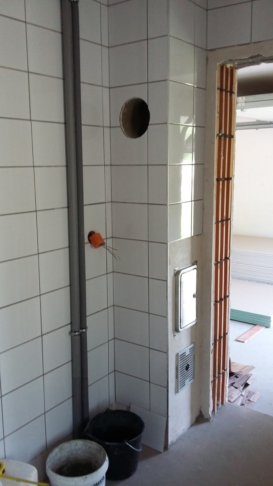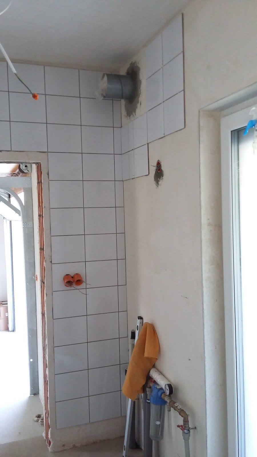 Oprócz tego udało mi się przykleić kolejnych kilkadziesiąt kafli, co powoduje, że ściany kotłowni wyglądają już całkiem elegancko. Na jutro zostaje ściana, której powierzchnia do obklejenia jest stosunkowo niewielka, ale za to są tam dwa okna, dwie kratki wentylacyjne, dwie rury do pompy ciepła i jeszcze jakaś zabłąkana puszka pod gniazdko elektryczne. Kątówka będzie mocno zapracowana :)