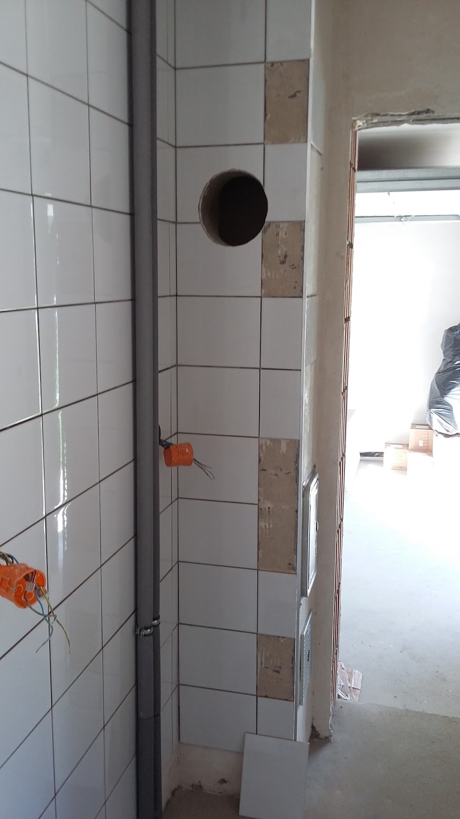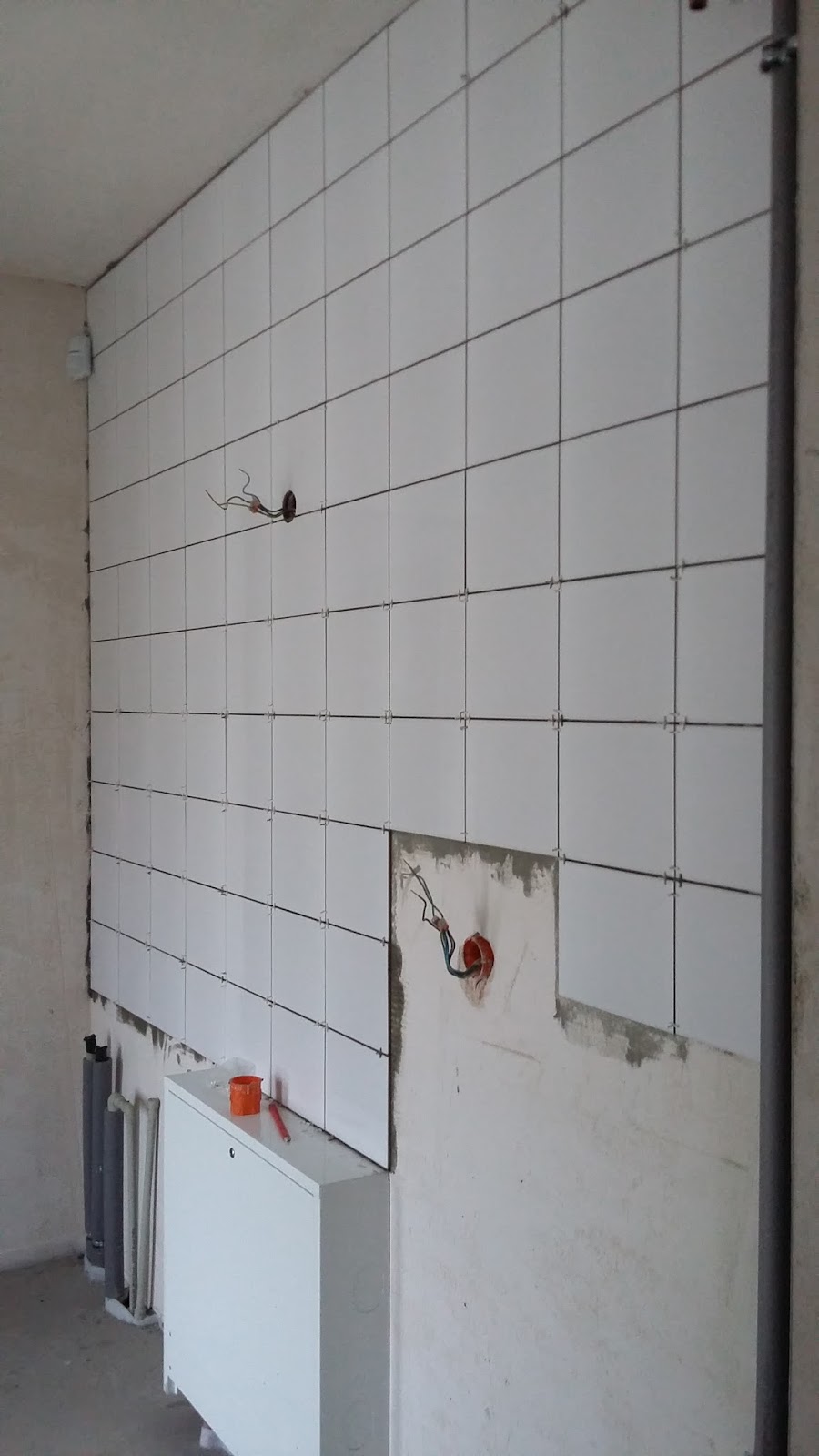 Dzisiaj dołożyłem kilkadziesiąt kafli i największa ściana w kotłowni jest gotowa (nie licząc najniższego rzędu, który będzie położony dopiero po przyklejeniu kafelek na podłodze).