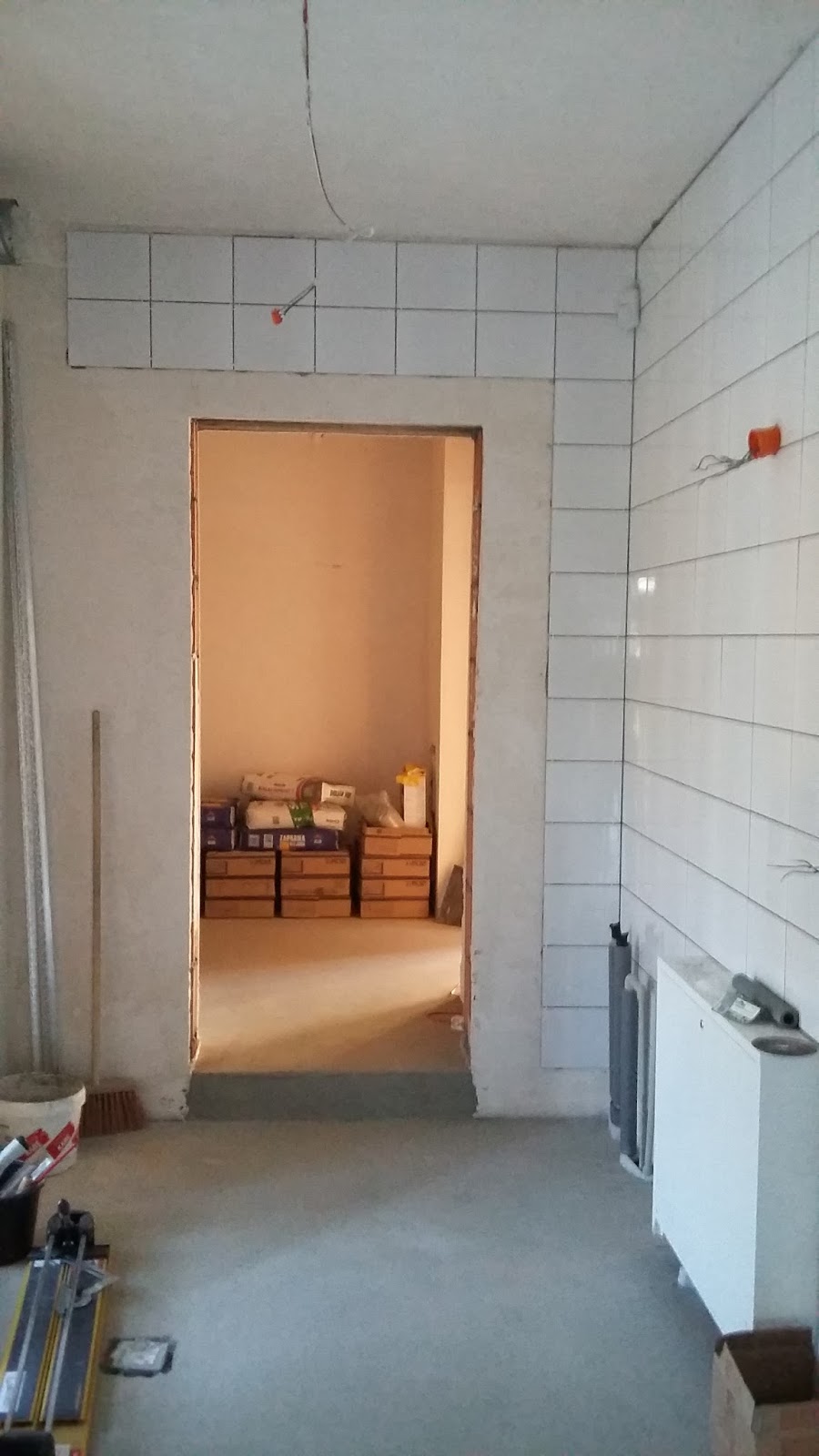 Dokończyłem ścianę od strony wiatrołapu. Otwór drzwiowy będę kończył po zamontowaniu drzwi.