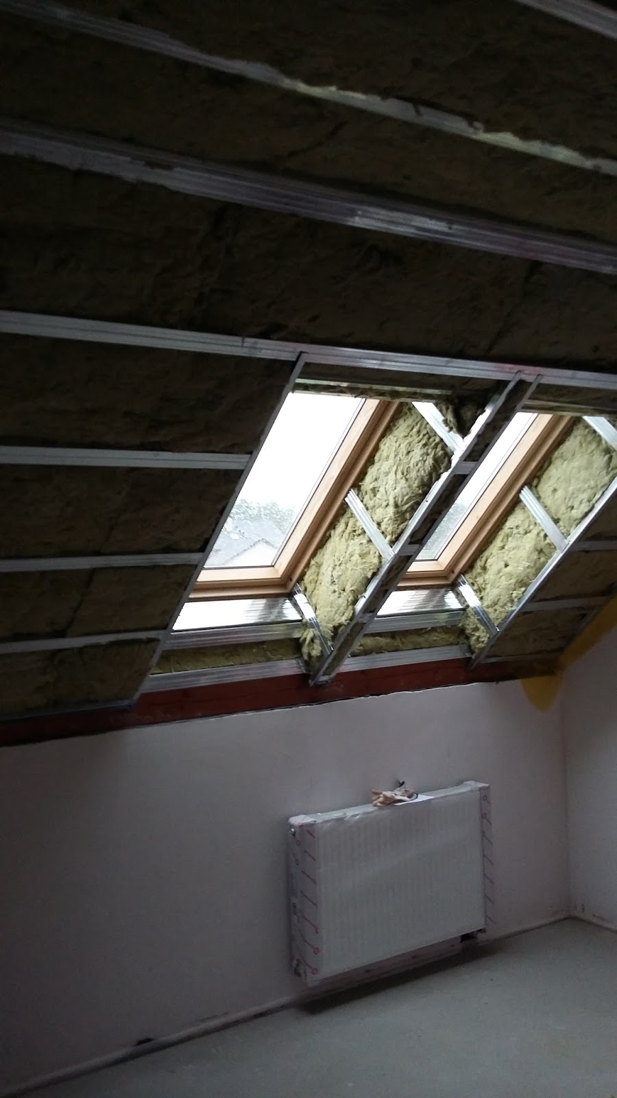 No to co teraz robić? Wkładam bluzę z długimi rękawami. czapeczkę i maseczkę przeciwpyłową i kontynuuję ocieplanie poddasza. Kłujące, bazaltowe igiełki już nawet nie robią na mojej skórze wrażenia. Najbardziej dokuczliwe są drobinki wełny skalnej wpadające do oczu nawet gdy się pracuje w okularach, i konieczność pracy w dość grubym ubraniu, podczas gdy na zewnątrz jest chyba ze 30 st.C.