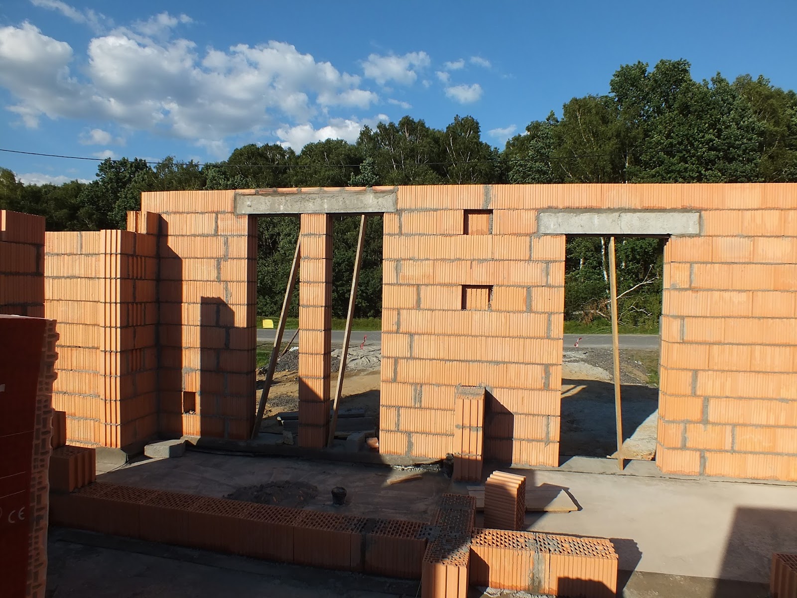 Parter jest prawie gotowy. Mury stoją na baczność dumnie prężąc niemal idealnie równe ceramiczne płaszczyzny. Ułożone we właściwych miejscach nadproża stoją, a właściwie leżą na straży otworów okiennych i drzwiowych, pilnując by ich wielkość nie została zmieniona przez potężne siły działające w konstrukcji budynku. Zrobiło się lirycznie? No cóż, tak długo marzyliśmy o własnym domu, że teraz, gdy nasz sen się materializuje, wszystko co tu się dzieje jest dla nas poezją.