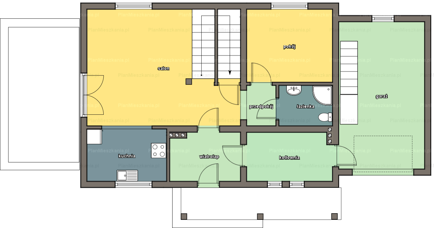 ponieważ dom chcemy ogrzewać kotłem na pellety, robimy miejsce na worki z pelletami poszerzając garaż o 1 m,