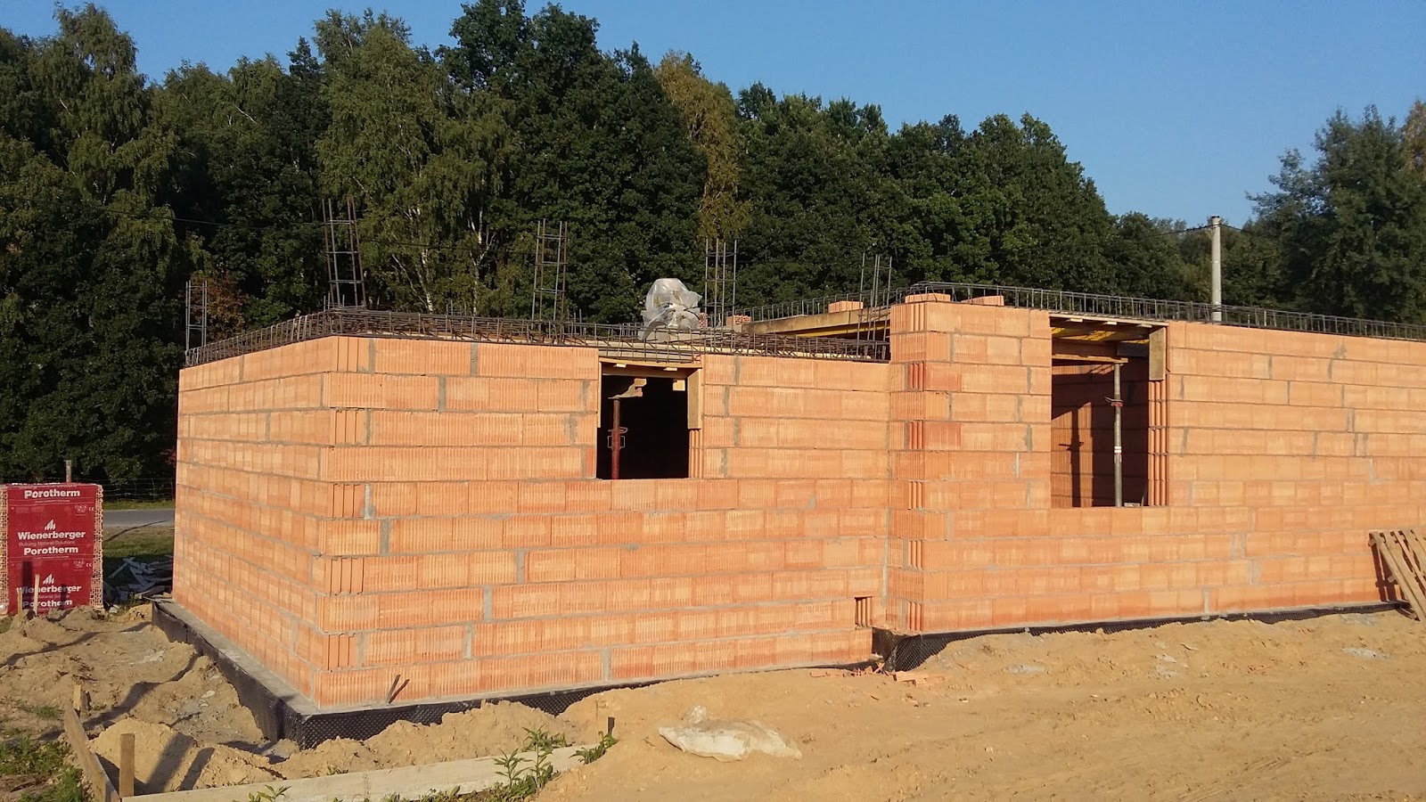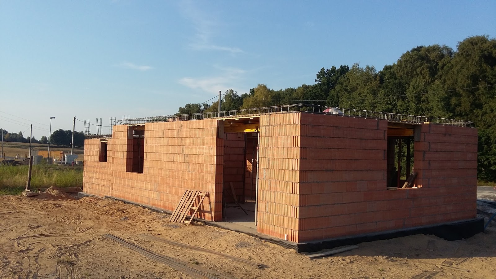 Dojeżdżając do działki już z pewnej odległości widać, że coś wystaje znad garażu. Bliższe oględziny pokazują, że wystającymi elementami są pręty zbrojenia słupków w ściankach kolankowych nad stropem garażu. Jest ich dokładnie 8, a to oznacza, że mam 8 kolejnych powodów do radości. Mało tego, zagęściła się też sieć zbrojenia wieńców, która w tej chwili oplata już cały budynek. Jednym słowem: prace nieustannie posuwają się do przodu.