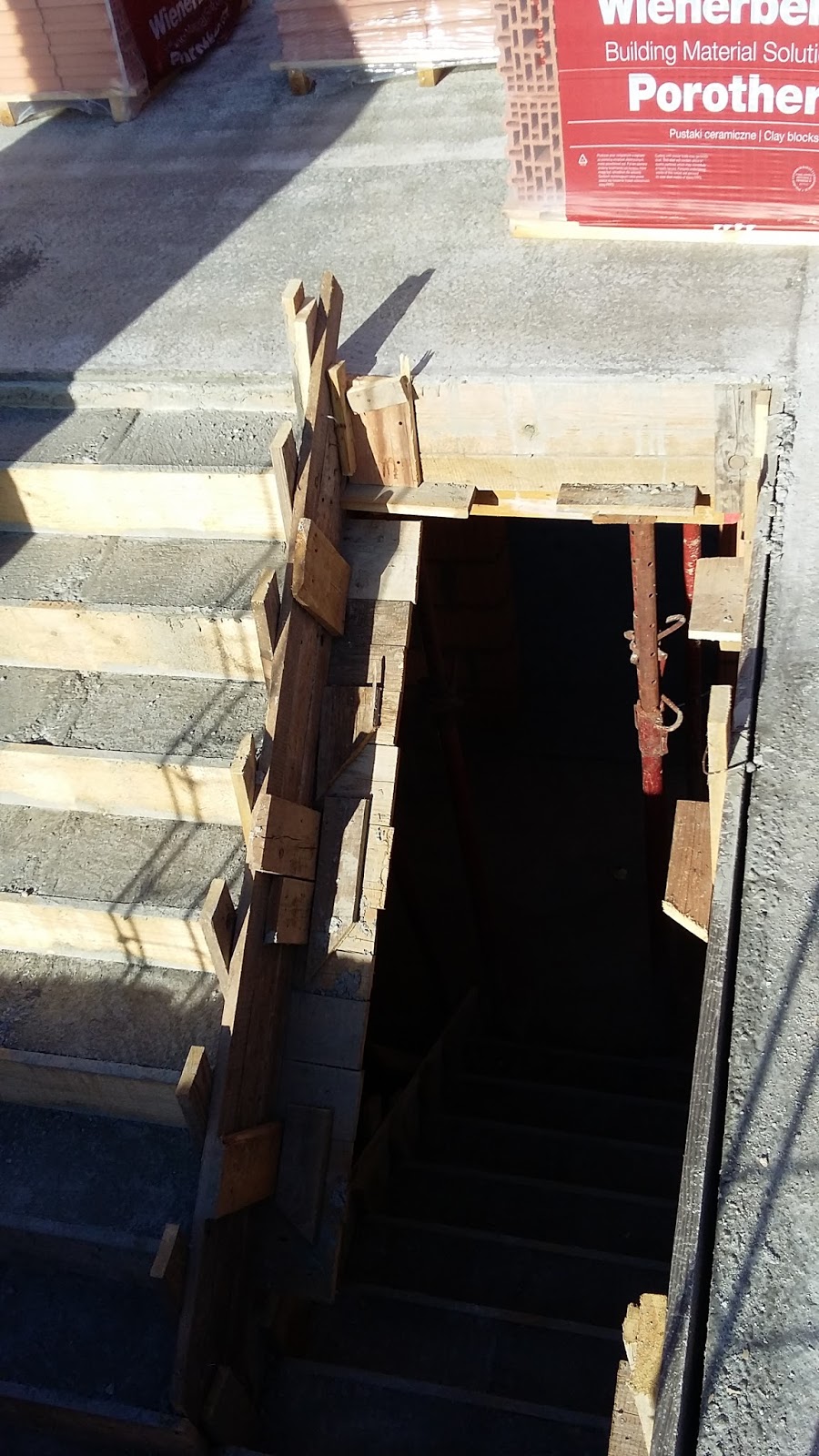 W porównaniu do dnia wczorajszego, gdy polewanie świeżo zalanego stropu polegało na skakaniu, niczym szympans, z wiaderkiem po drabinie, dzisiaj był to nadzwyczajny komfort. Wodę w wiaderkach wnosiłem po schodach - coś pięknego.