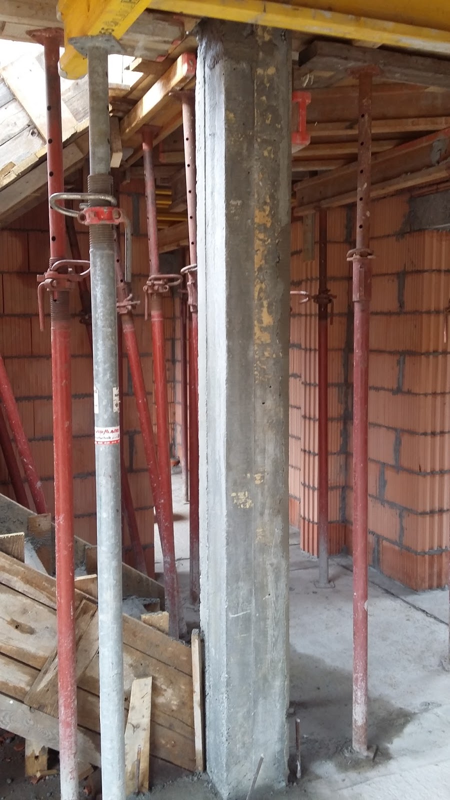 Na poddaszu zostały zaszałowane prawie wszystkie słupki w ściankach kolankowych (20 z 24) a przed budynkiem rozpoczęto prace przy trzech słupach podtrzymujących dach. No to jutro pewnie będą ponownie "zabawy" z betonem.