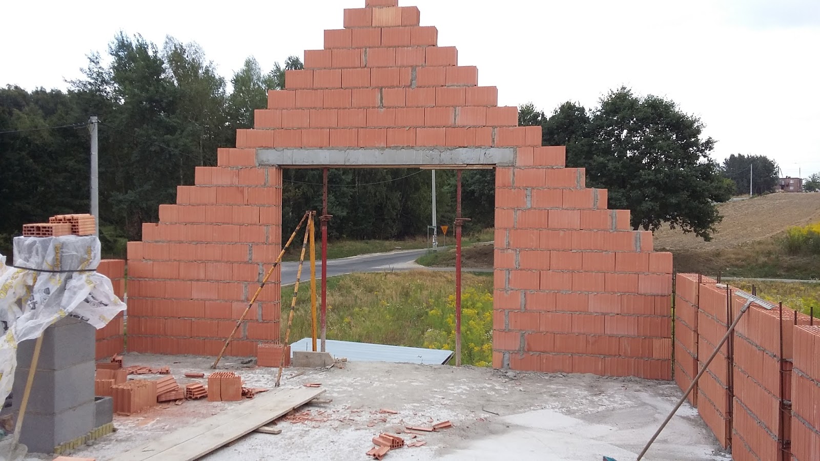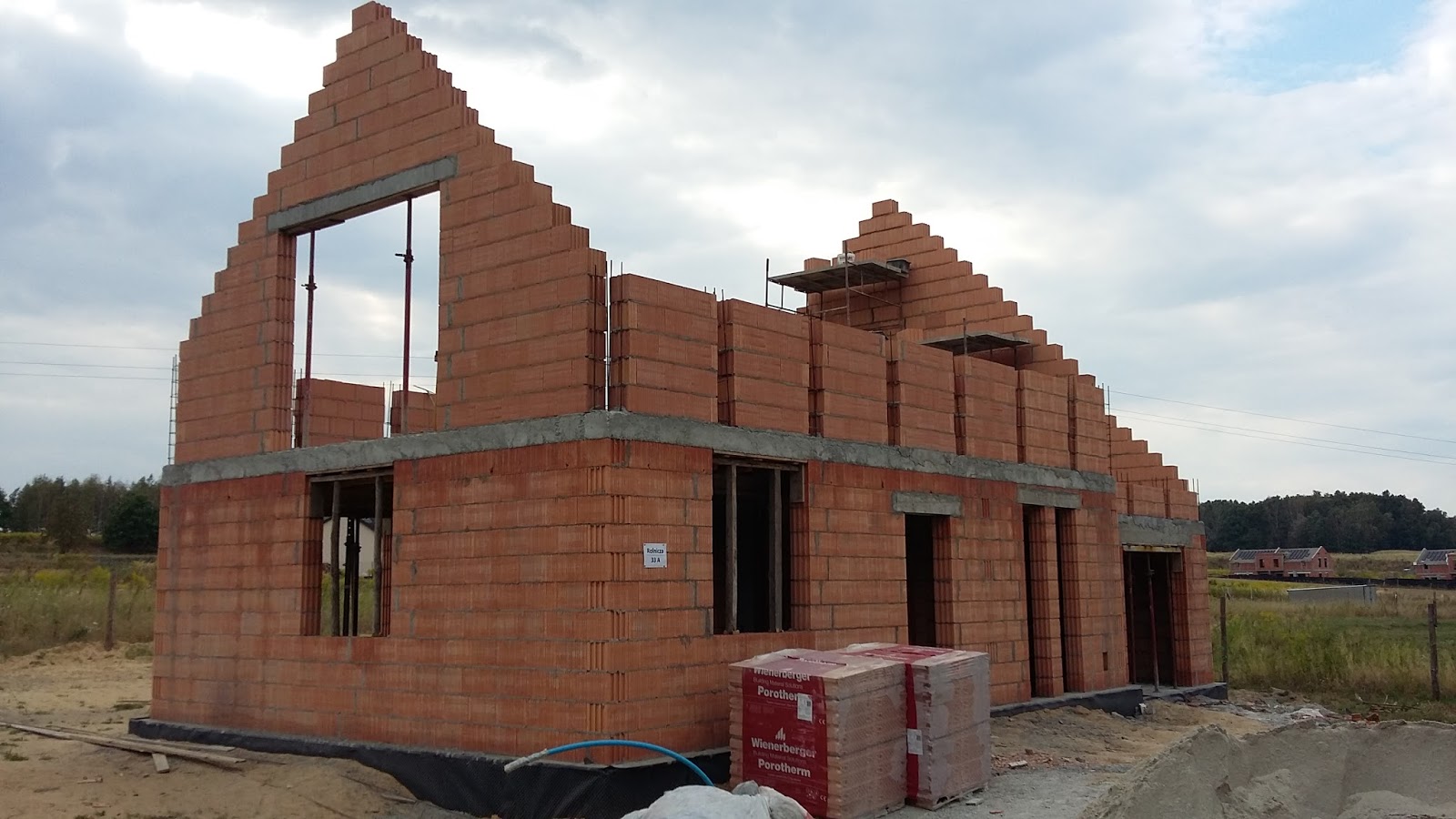 | Ukończona została ściana szczytowa oraz nadproże nad portfenetrami. |