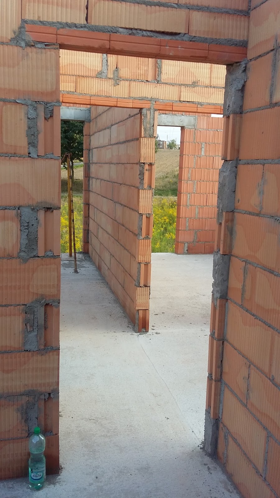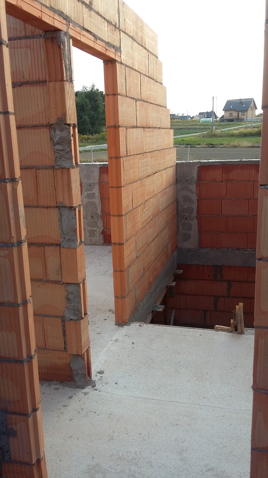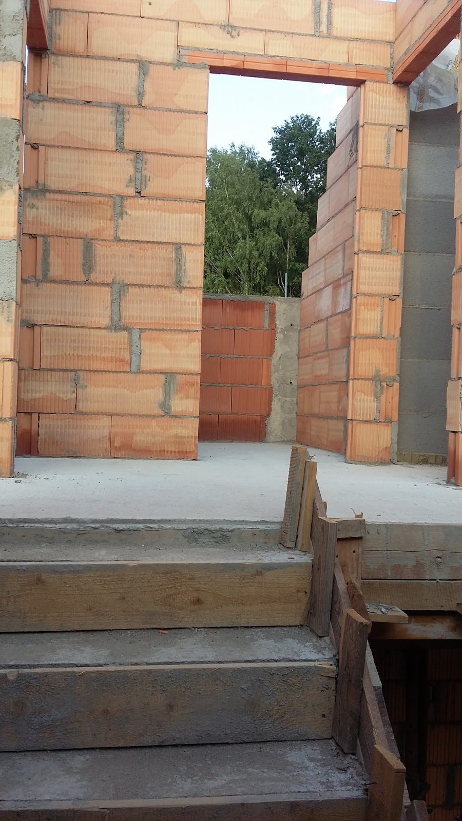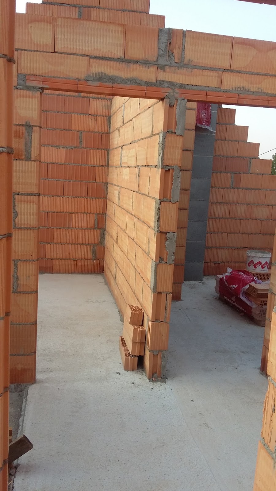 Kilka dni nic nie pisałem, bo z jednej strony jakoś czasu nie starczało, a z drugiej strony chwilowo budowa straciła impet. Wszystko co można było na tę chwilę zrobić zostało wykonane - wymurowane zostały wszystkie ściany działowe na poddaszu i skończone zostały trzy zewnętrzne słupy klinkierowe. Pozostały co prawda do wymurowania ściany działowe na parterze, ale dopóki znajdują się tam podpory podtrzymujące deskowanie stropu (a powinny tak stać od chwili wylania betonu przez 4 tygodnie), to nie bardzo jest jak te ściany wykonać.