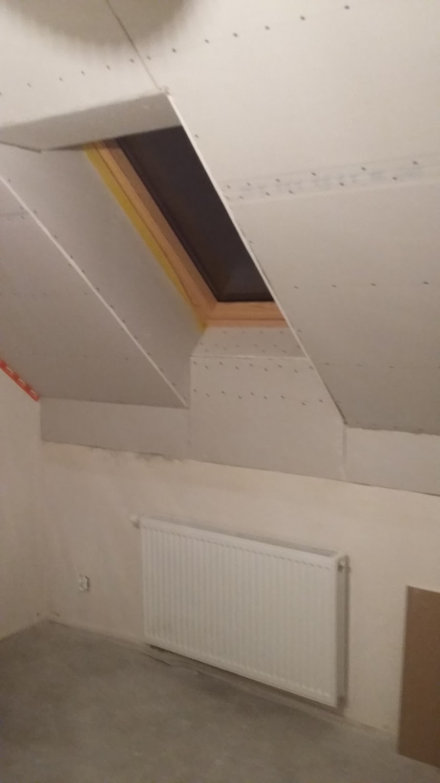 Na pięterku zrobiłem zabudowę g-k (bez spoinowania) okien połaciowych w łazience i dwóch pokojach.