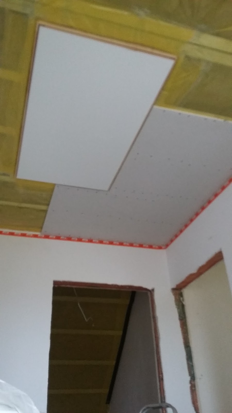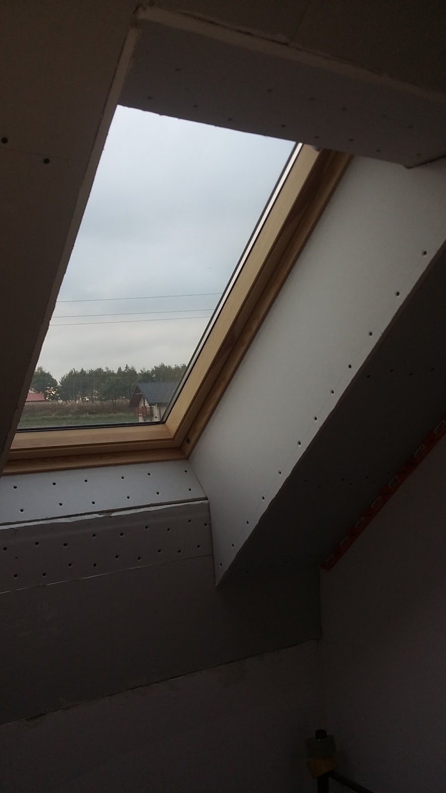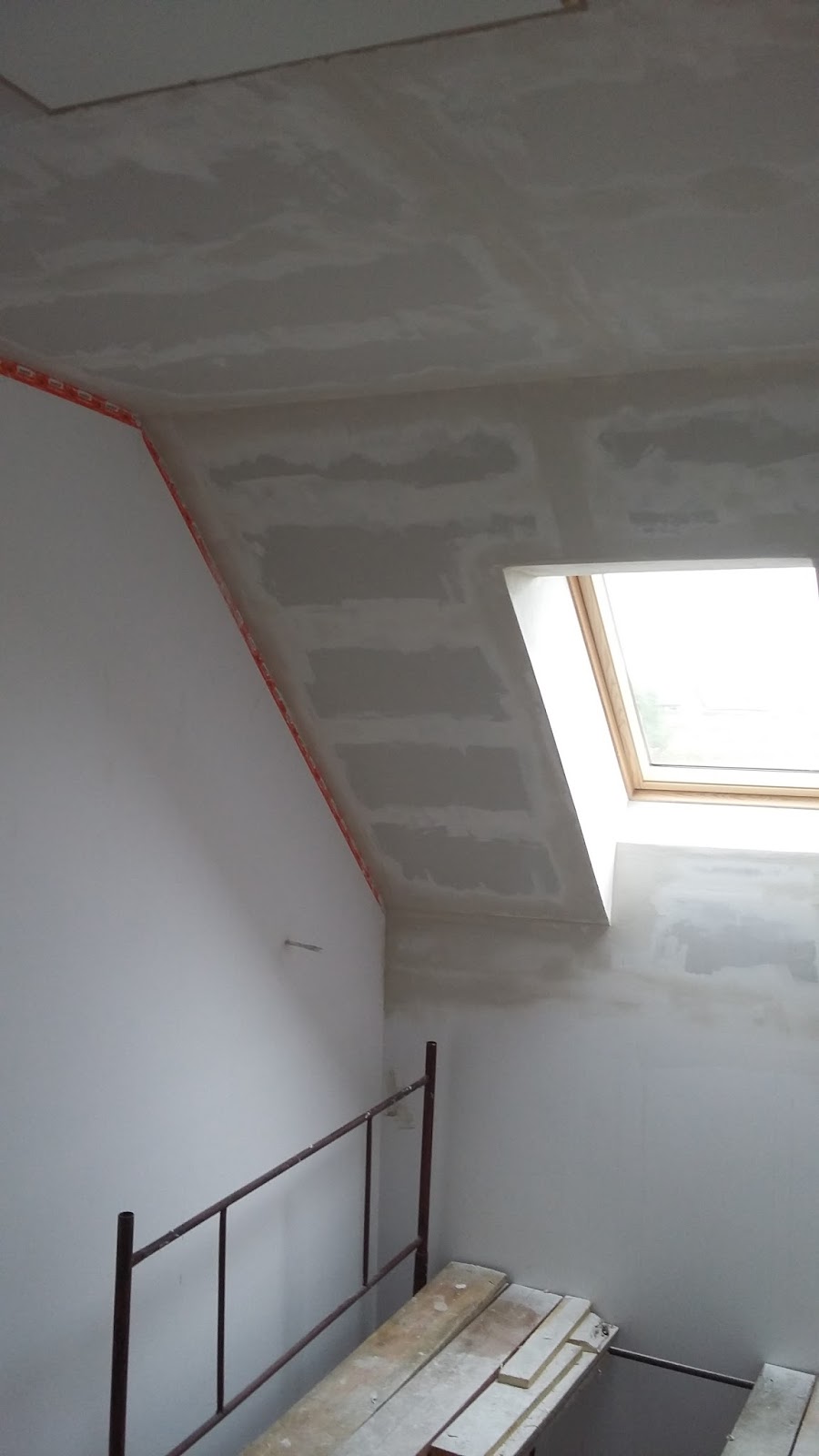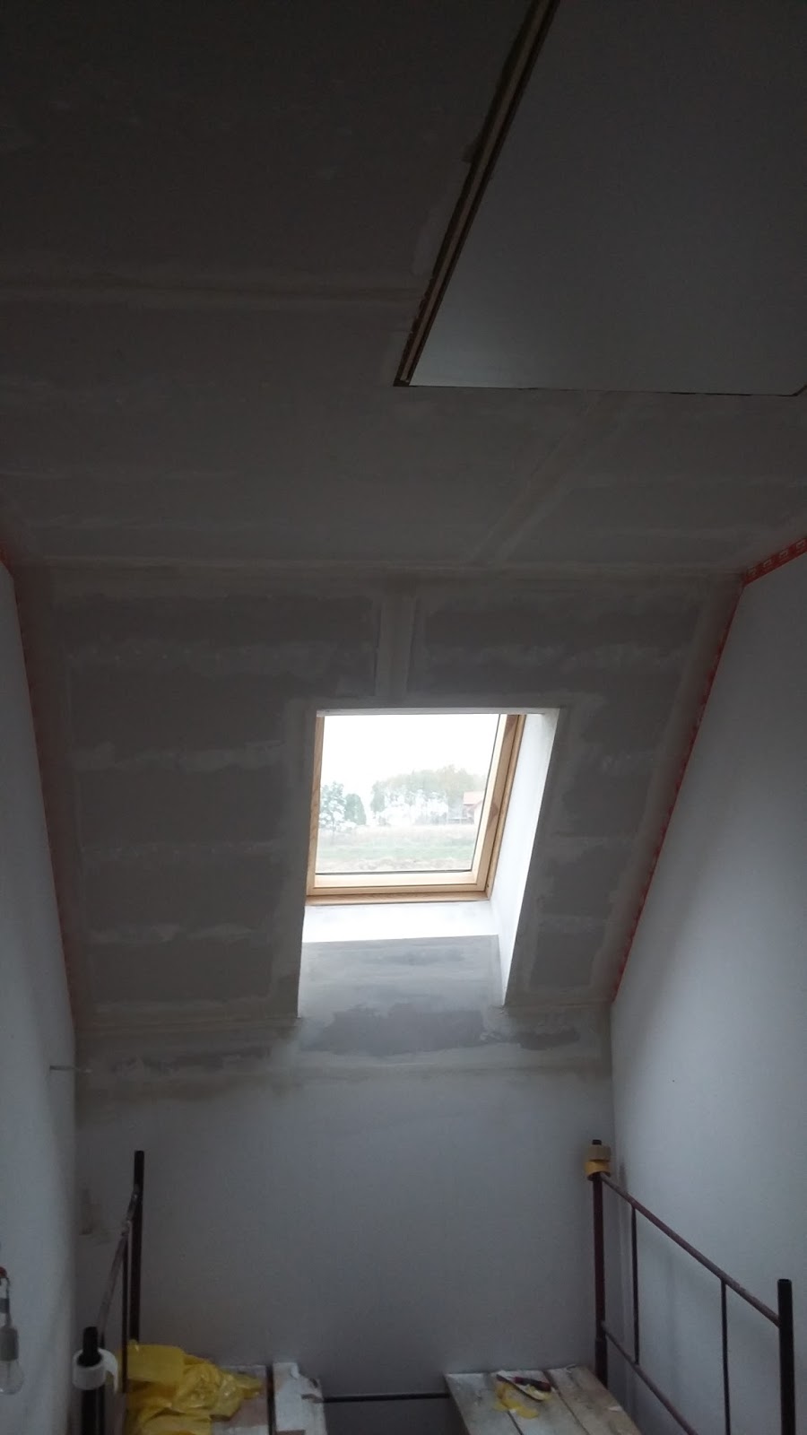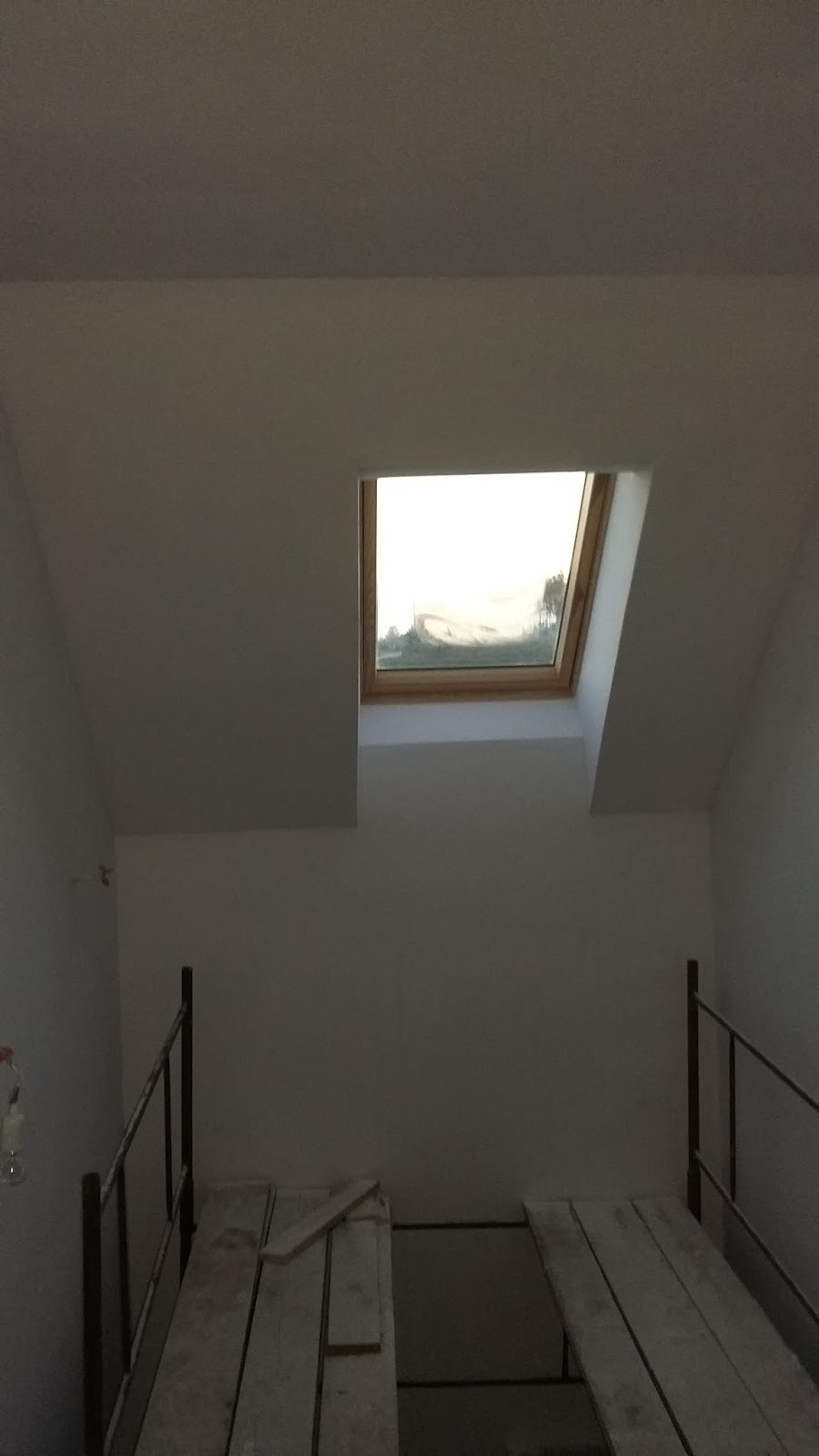 Na piętrze dokończyłem pracę przy schodach strychowych, montując ozdobne listwy maskujące wokół otworu schodowego. Namęczyłem się z tym okrutnie, bo listwy owe wykazały perfidną złośliwość i nie chciały ulokować się w przewidzianych dla nich miejscach. Po wielu próbach na szczęście udało się maskownice założyć i widok schodów wiele zyskał.