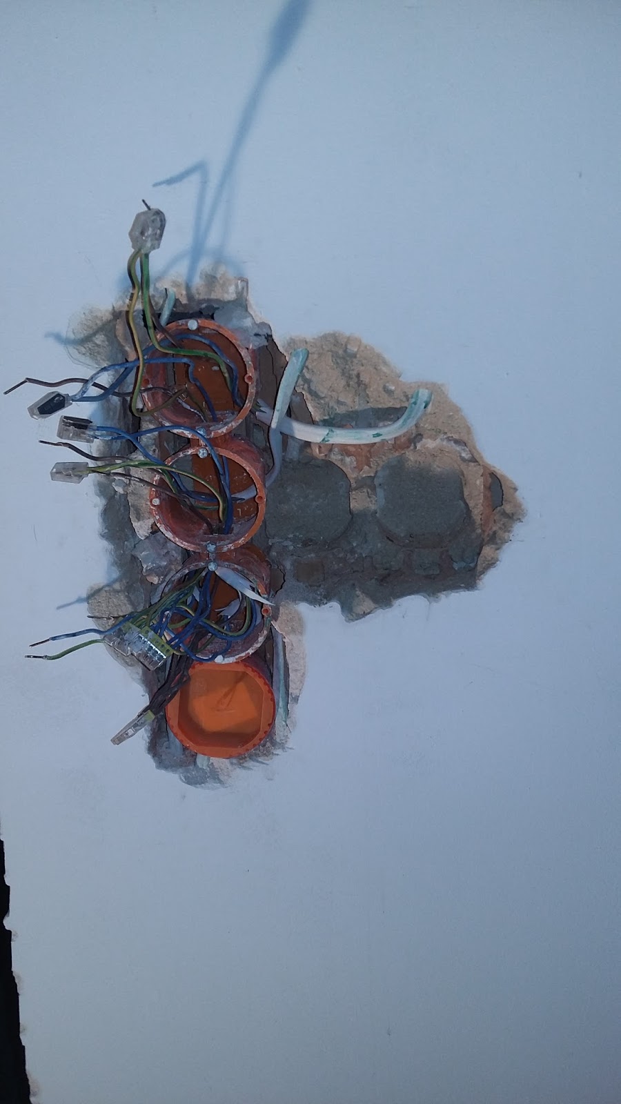 Zająłem się też łącznikami oświetlenia przy kominku, które elektryk przewidział jako poziomy układ w trzyelementowej ramce. Problem w tym, że przyszła obudowa kominka nałoży się na ostatni łącznik i będzie klops. W związku z tym pzrearanżowałem układ puszek pod łączniki na pionowy i podłączyłem pajęczynę 24 przewodów w sprawne, działające obwody elektryczne. Co do kominka to zamówiłem płyty krzemianowo-wapniowe, z których będę tworzył obudowę oraz elementy dodatkowe w postaci kratek i luftów w stosownych wymiarach. Obudową zajmę się już wkrótce.