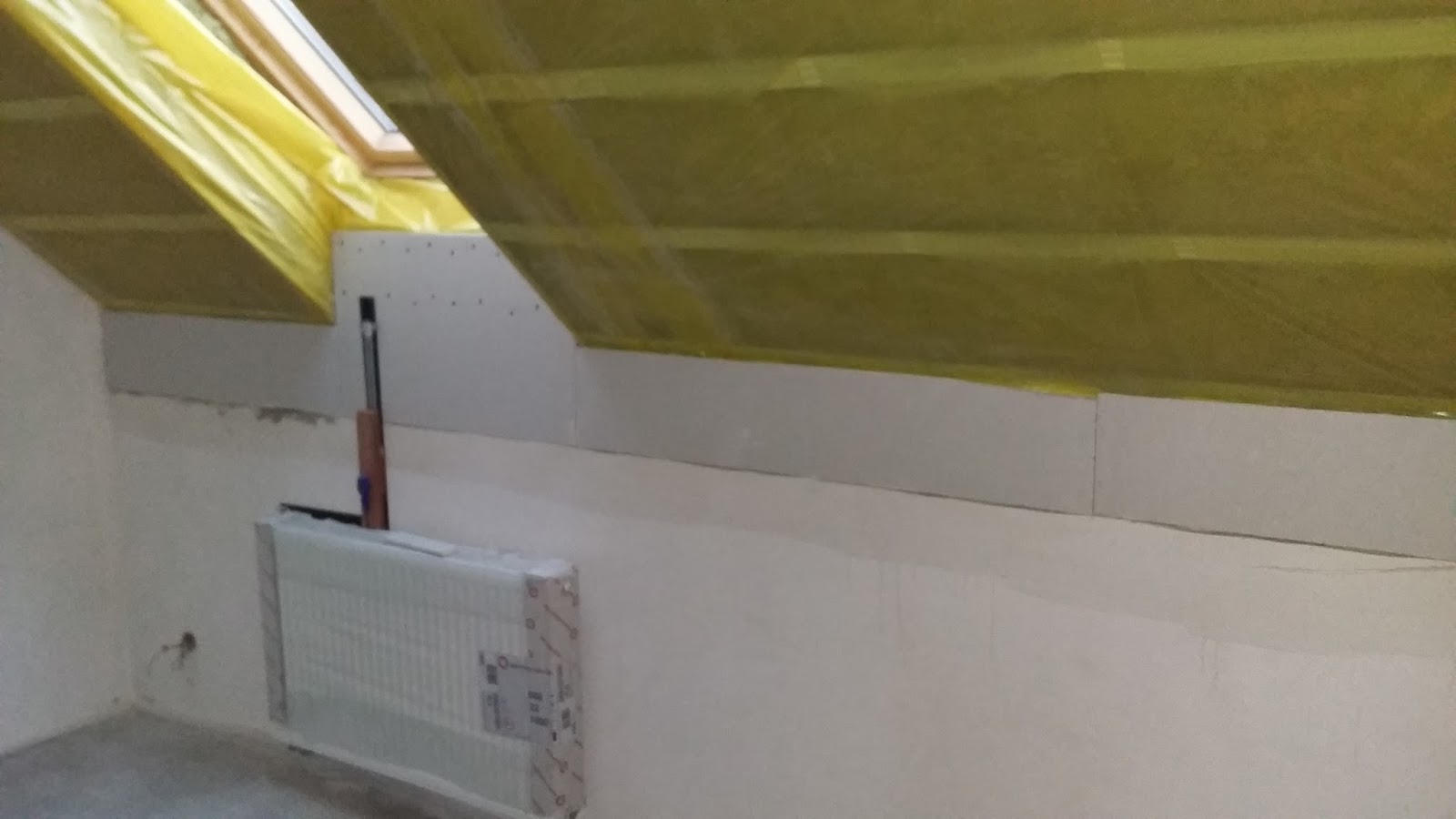 | Pokój na poddaszu przygotowany do "płytowania" kartongipsami. |