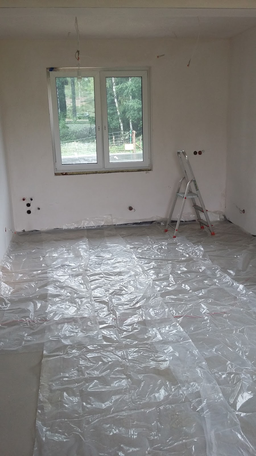 Rozpocząłem też nakładanie gładzi na parterze. Dzisiaj zdążyłem "wygładzić" sufit w kuchni i belkę między kuchnią i salonem.