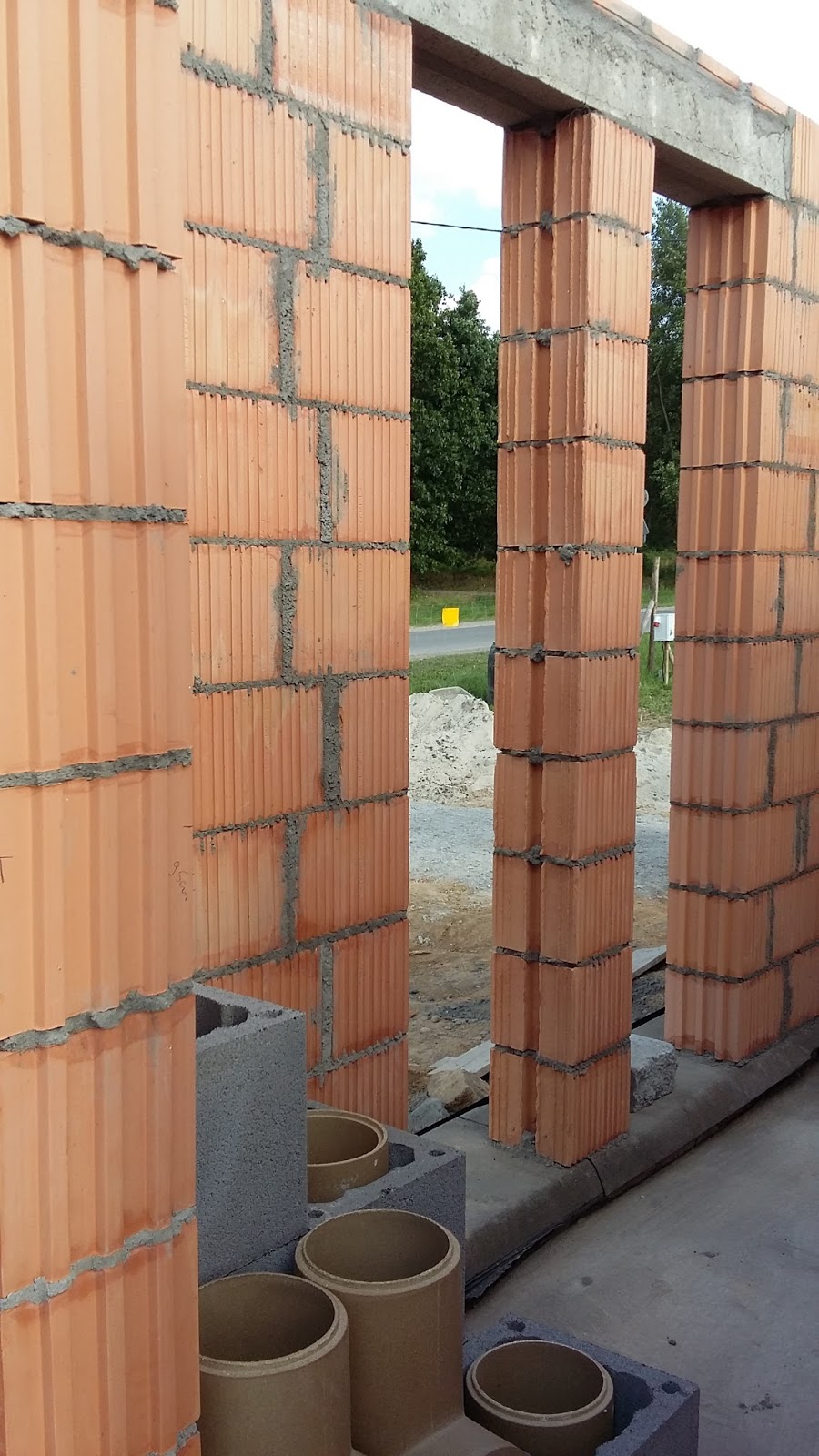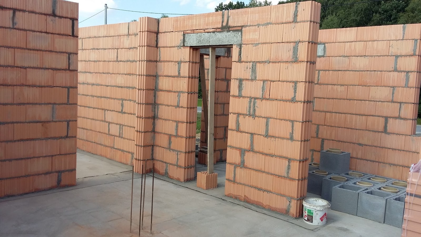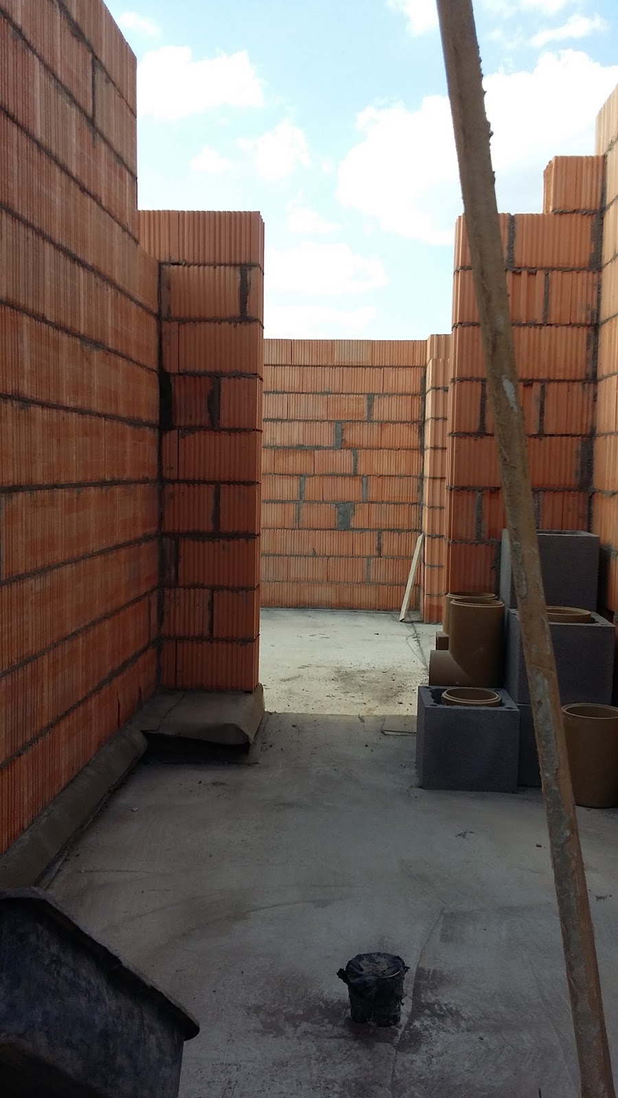 Termometr w cieniu pokazał dzisiaj 36 stopni Celsjusza, a w słońcu pewnie z 50 stopni. A na budowie walczą fachowcy przy konstruowaniu stropu. Pojawiły się wieńce i belki nośne, a także ułożono częściowo podpory pod deskowanie stropu. Zaszałowany został też słup wewnątrz salonu.