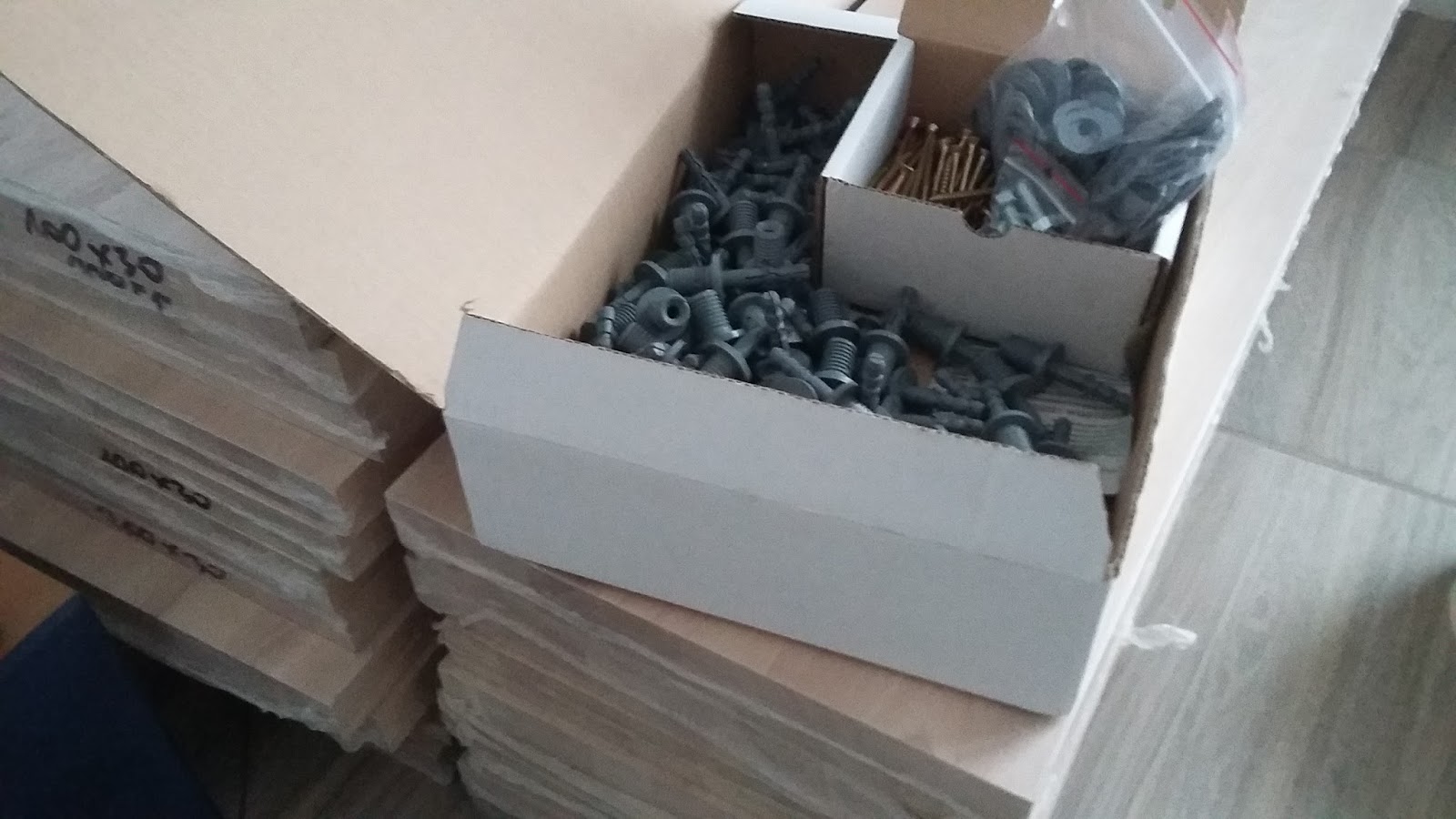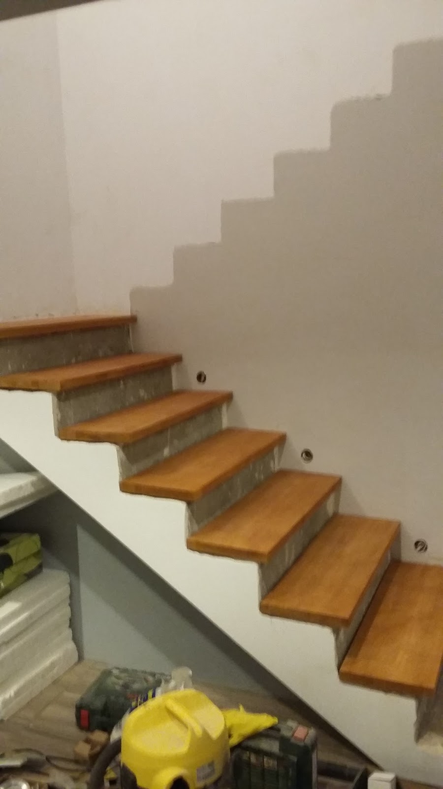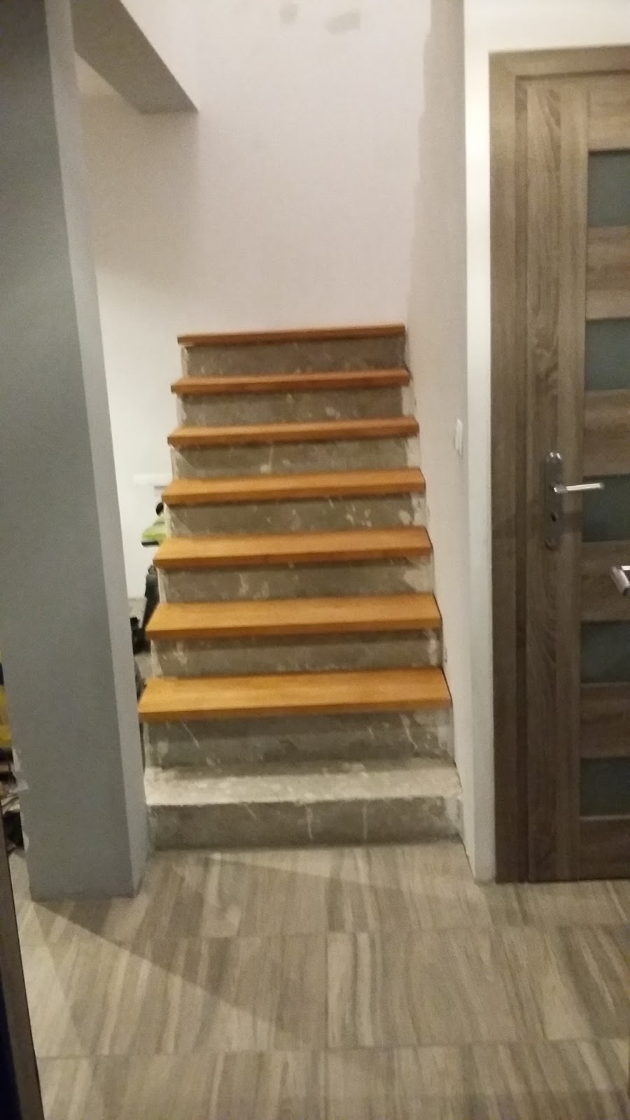 Żonka w garażu pomalowała lakierem bezbarwnym zabejcowane wcześniej bukowe stopnice. Pod wpływem lakieru drewno znacznie ściemniało, i choć odbiega teraz kolorystycznie od pierwotnych założeń, to teraz znacznie bardziej mi się podoba.