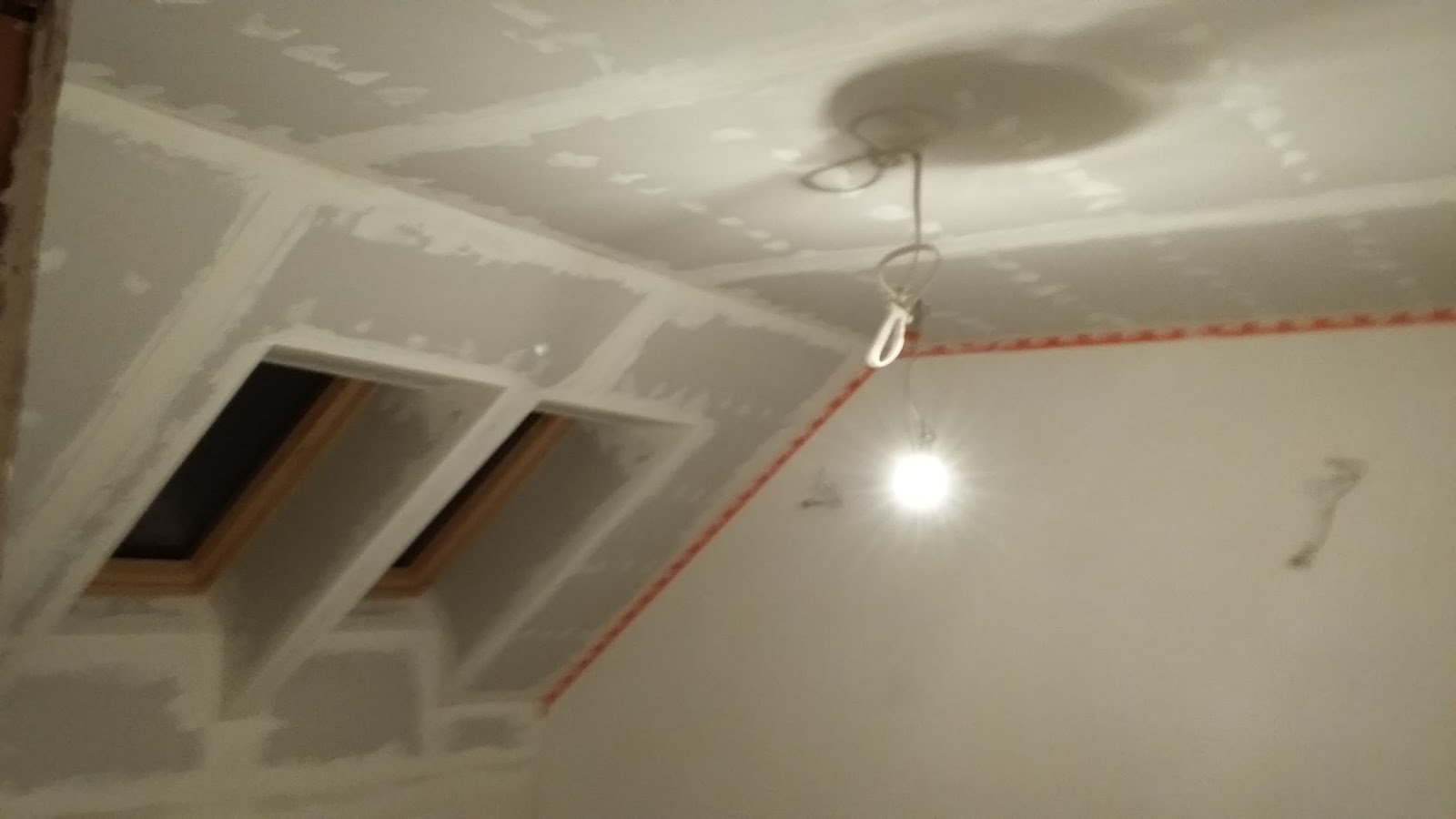 Na pięterku zabudowa g-k w jednym z pokoi została zaspoinowana trzema warstwami gładzi i po jej wyszlifowaniu synek zaczął nanosić pierwszą warstwę farby.